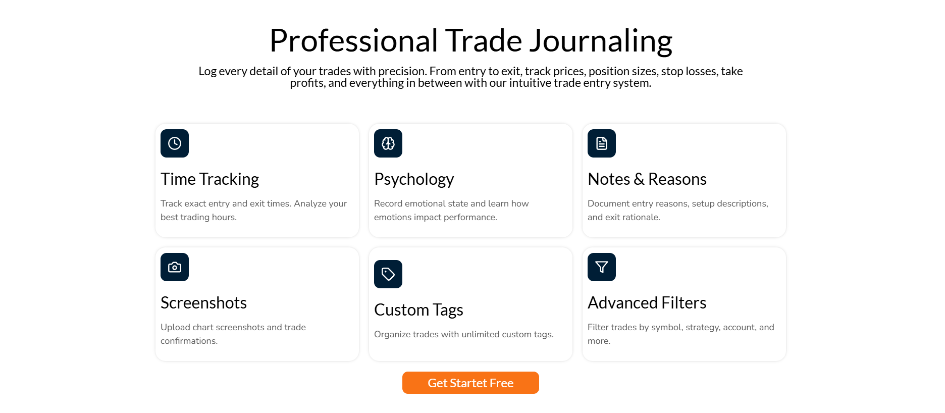 Skupiłem się na przejrzystości komunikacji i prostocie interfejsu — duże nagłówki, krótkie opisy funkcji oraz wyraźne przyciski CTA prowadzące do rejestracji.