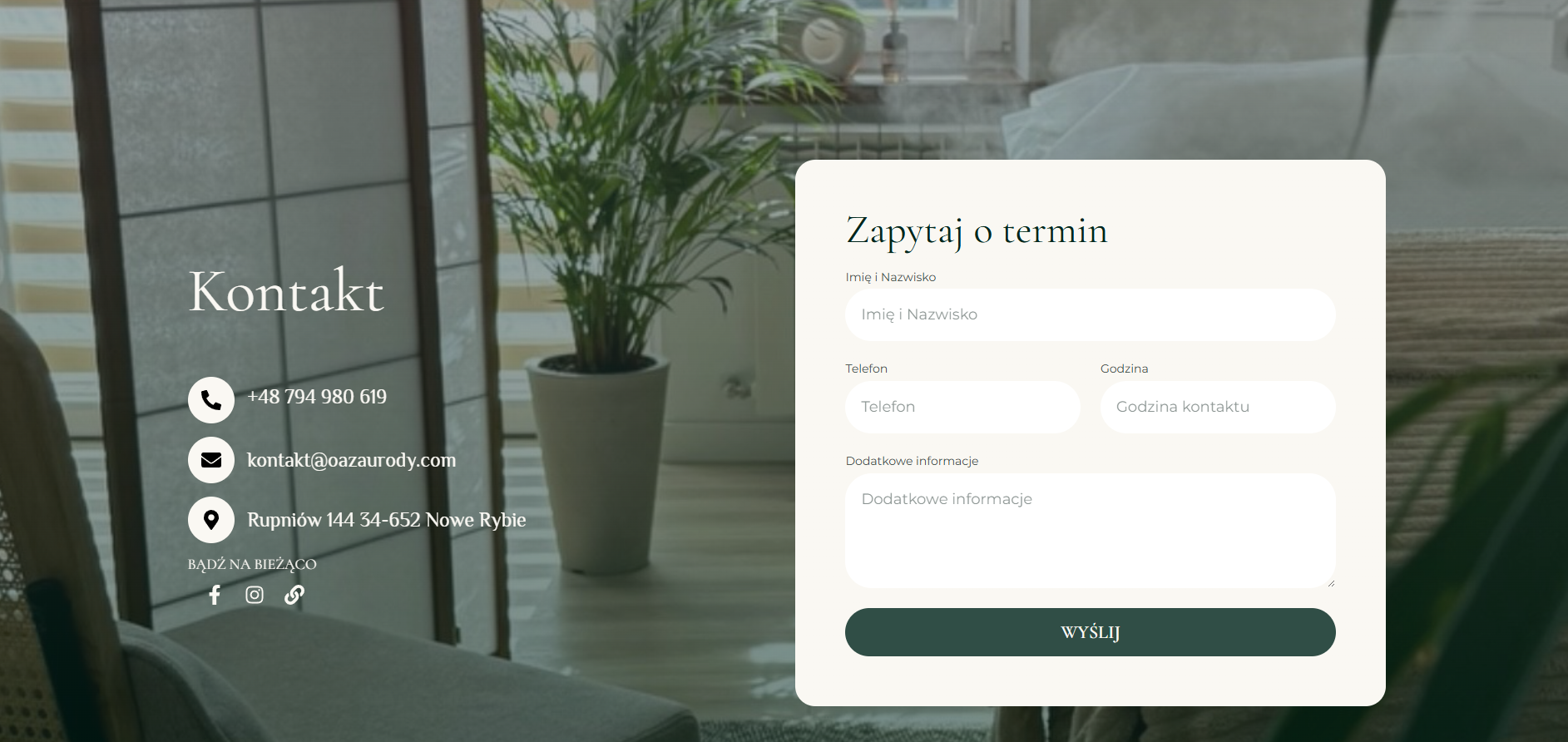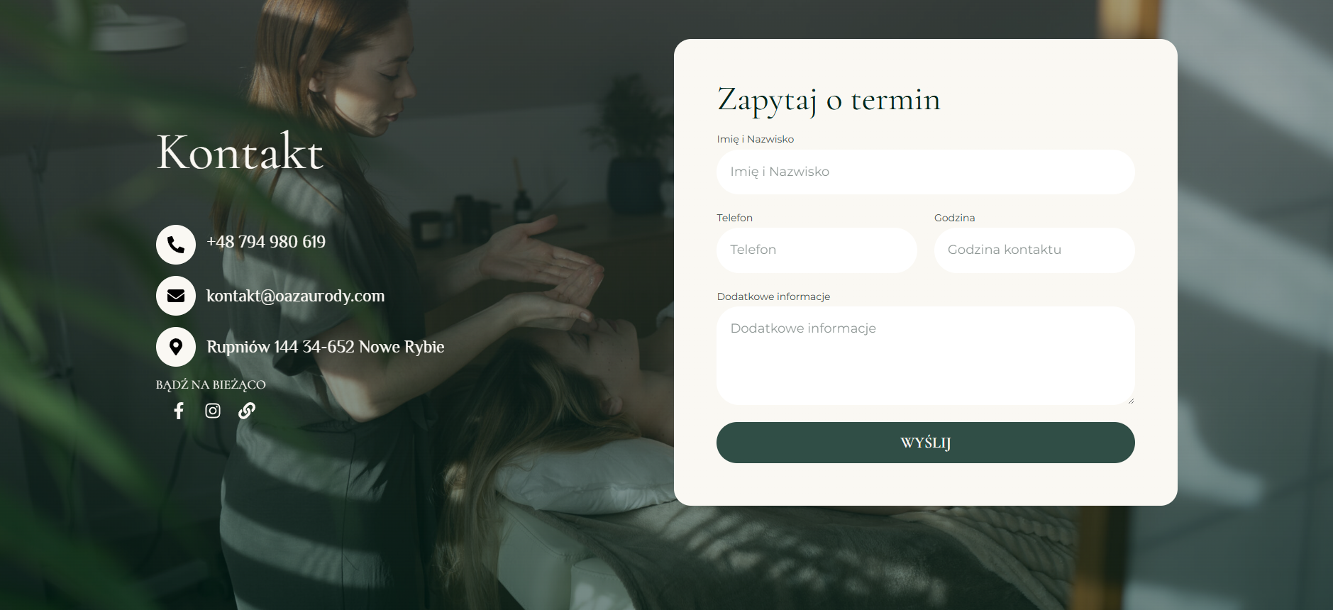 Klientka nie miała wcześniejszej strony, więc należało stworzyć identyfikację od podstaw. Zastosowałem ciepłą kolorystykę, delikatną typografię i zdjęcia w wysokiej jakości, które budują atmosferę spokoju i zaufania.